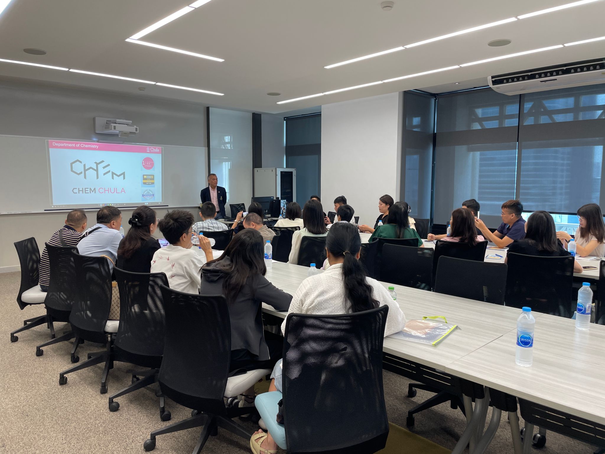 在泰国排名第一的朱拉隆功大学(Chulalongkorn University)成立于1917年,是泰国历史悠久且备受推崇的高等学府,被尊为“全国最有威望的大学”。在朱拉隆功大学,教师代表团受到了热情地接待,参观了多个学院和研究中心,并有机会与该校的教授和学者们进行深入的学术交流。Sanong Ekgasit等三位教授分享了化学物质在工程生产上的运用以及泰国核心的化学工业技术的科研创新及国际合作方面的宝贵经验,就共同关心的教育话题进行了热烈的讨论。通过这次交流,让鸭脖官网代表团感受到了朱拉隆功大学教授们对于学术研究的热情和专注,体验了泰国顶尖学府的教育质量和学术氛围,对泰国高等教育的科研实力和创新精神有了更加深刻的认识。
