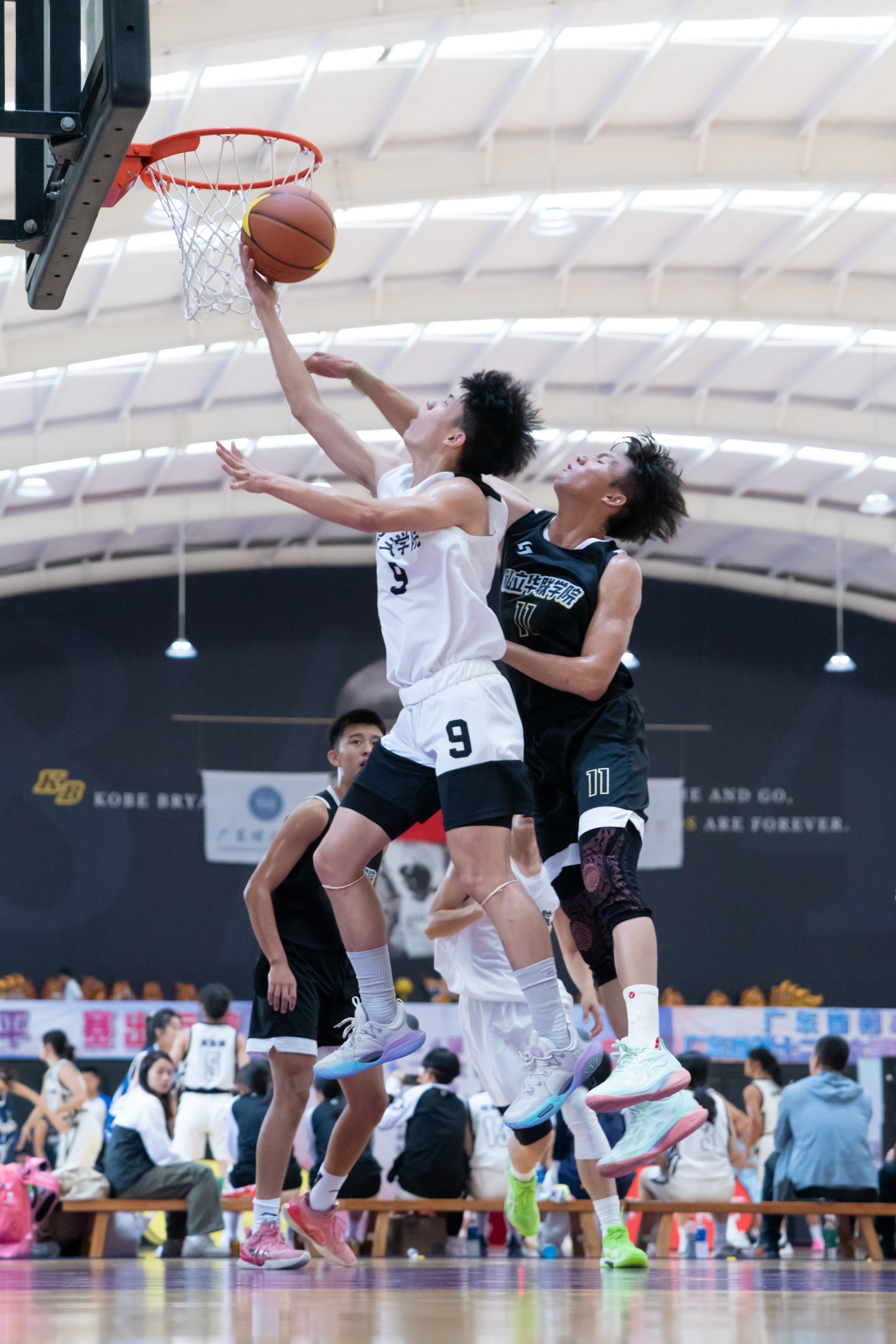升旗仪式后,比赛在体育馆正式打响。运动员们奋力拼搏,敏捷的运球,绝妙的抢断,精彩的妙传、投篮、盖帽等动作,瞬间将赛场上的气氛点燃,加油声、呐喊声此起彼伏,尽展球员们朝气蓬勃的精神风貌。