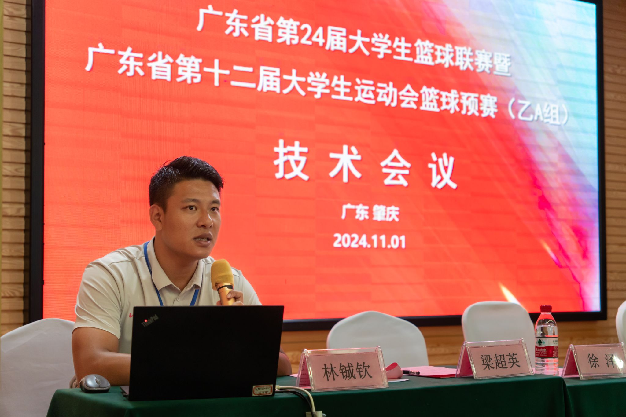 梁超英对省教育厅、学体联、学体联篮协的信任与支持表示感谢,并表示将全力保障本次比赛的后勤服务保障工作。同时,对赛事安全防范工作进行说明与讲解,提醒参赛队伍及工作人员在赛事期间重视安全问题,将健康顺利完赛工作放在首位。