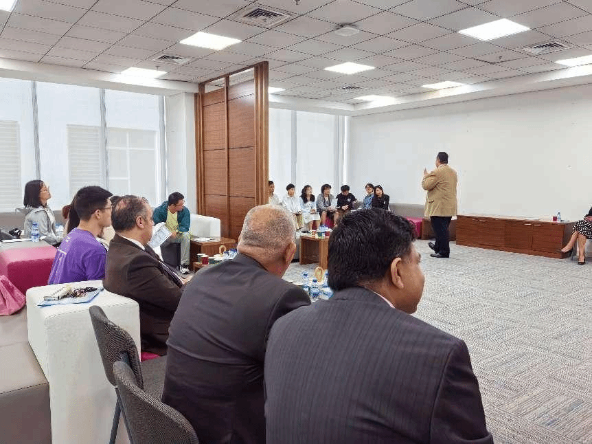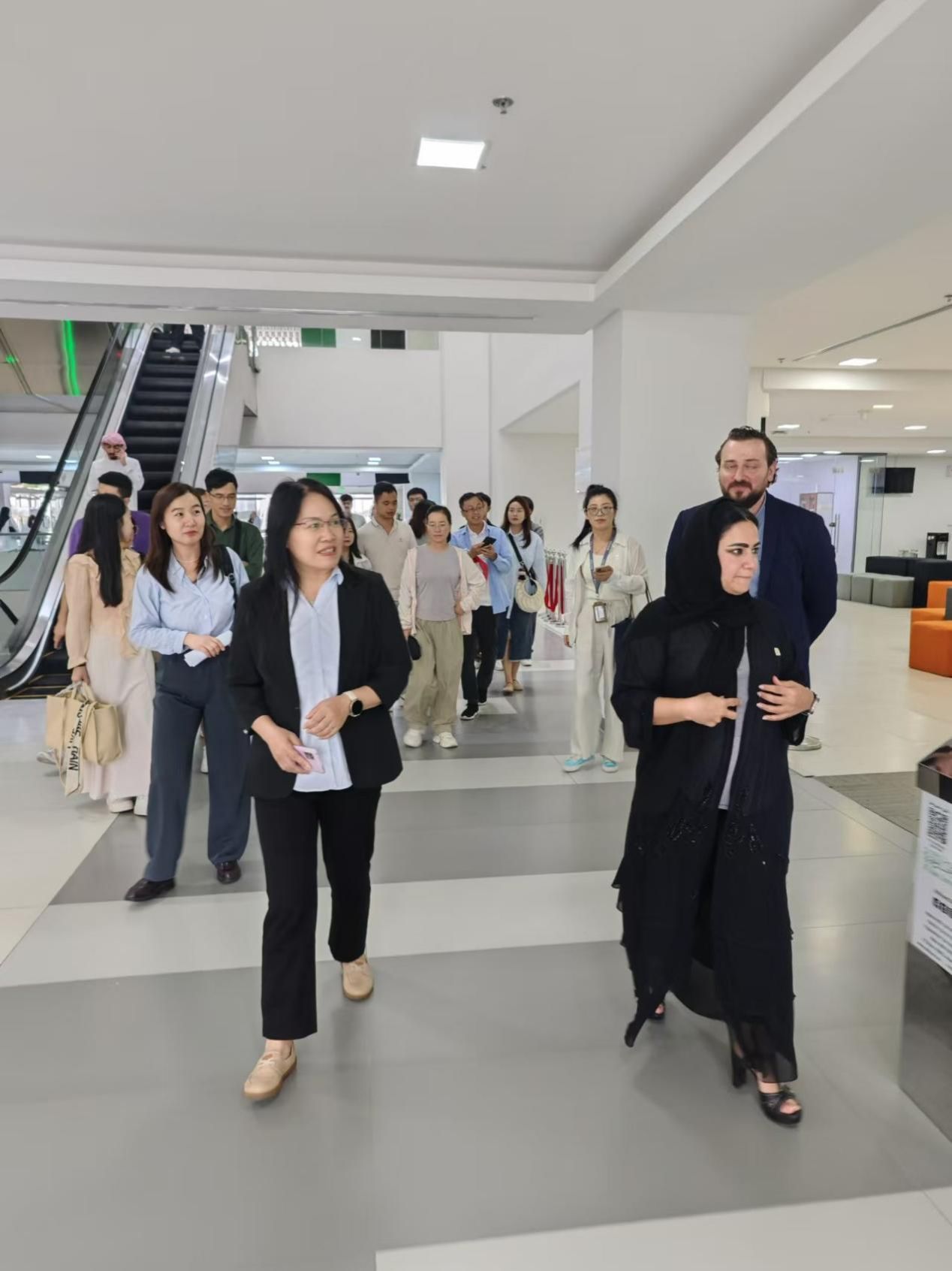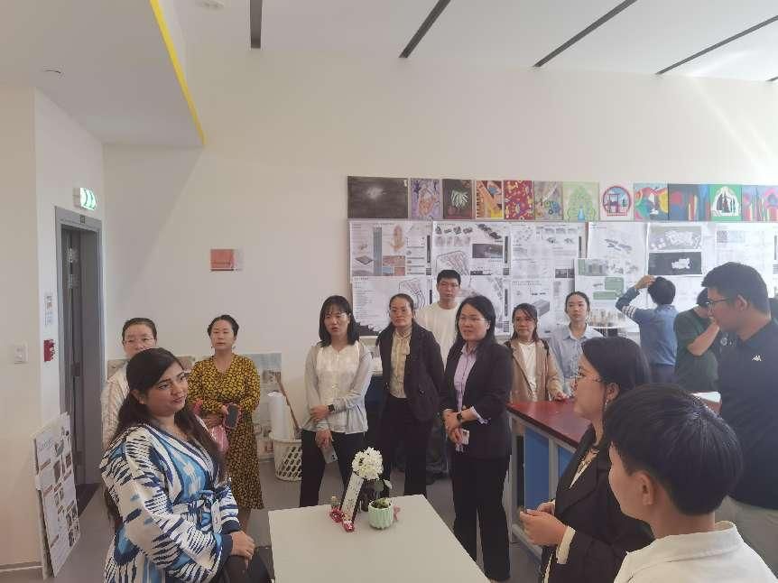 访问阿治曼城市大学时,研修团深入学校参观考察了实验室、教室、创新创业活动室等教学场所。参观完后双方校领导见面会谈,就各自学校重点研究领域、教师互访、学生交换等事宜进行了深入交流探讨。同时教师们也与该校相应学院在教学、科研、创新创业教育等方面开展互动交流。