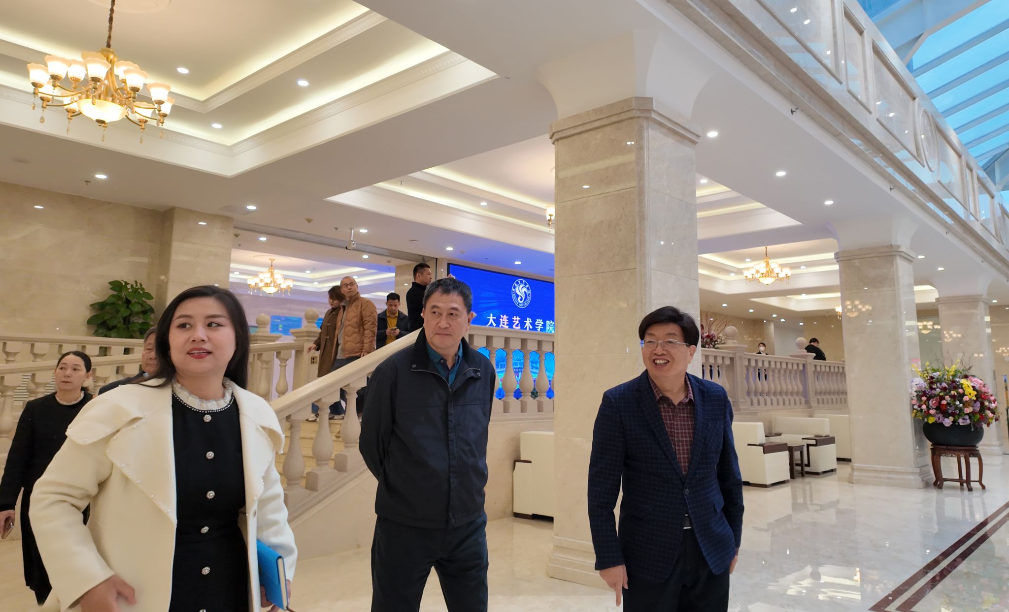 本网讯(宣传部)11月14日,鸭脖官网党委书记胡海建、顾问隋广军、党委副书记黎会友、中国科培教育集团顾问王传武与党委宣传部部长张冬、党委办公室主任赵玉娴、建设学院院长史会全一行赴大连艺术学院进行调研交流。此次交流活动主要围绕校园文化建设、大思政教育等方面展开。