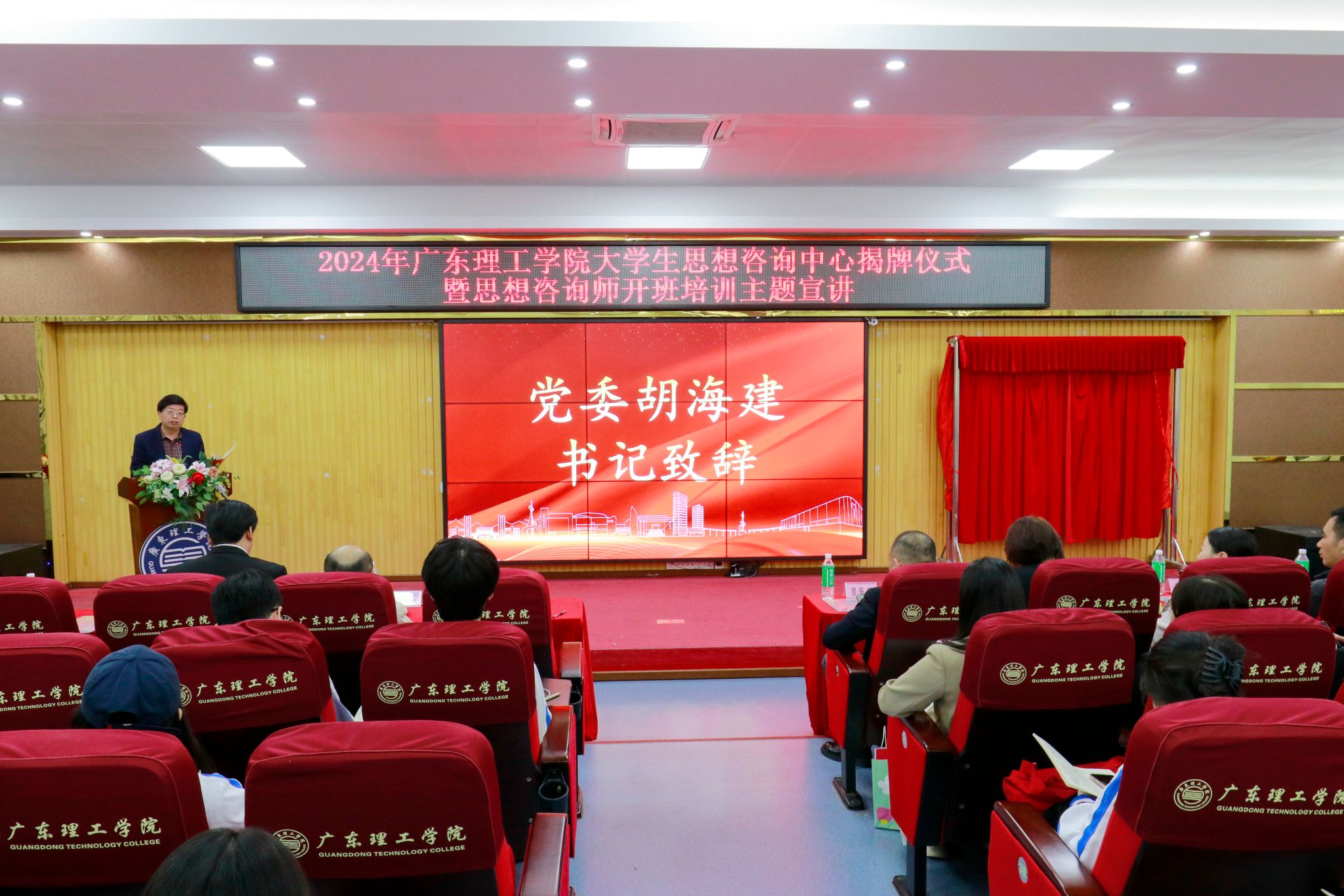 出席本次揭牌仪式的领导嘉宾有:学校党委书记胡海建、党委组织部部长廖振宇、党委宣传部部长张冬、会计学院党总支书记黎伯毅、信息技术学院党总支书记钟兆天、校团委副书记邢媛满以及来自马克思主义学院、心理咨询中心以及校团委共同组建的思想咨询师队伍。