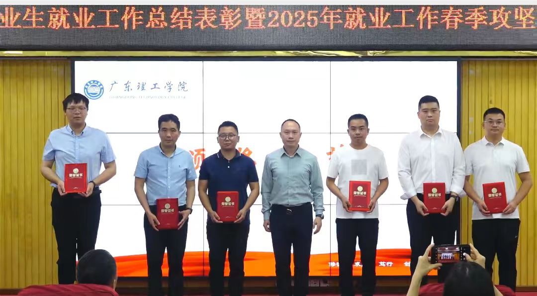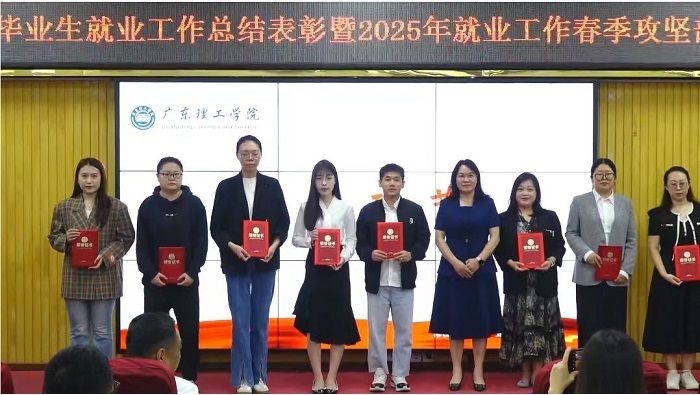 副校长刘香萍宣读了《关于公布 2024 届毕业生就业工作先进集体、先进个人评估结果的通知》,张宗珊、舒程分别为获得2024年就业工作先进集体一等奖、二等奖的学院颁发奖牌,张宗珊、刘香萍、舒程,就业指导中心主任李相平为2024年就业工作先进个人获得者颁发奖状。