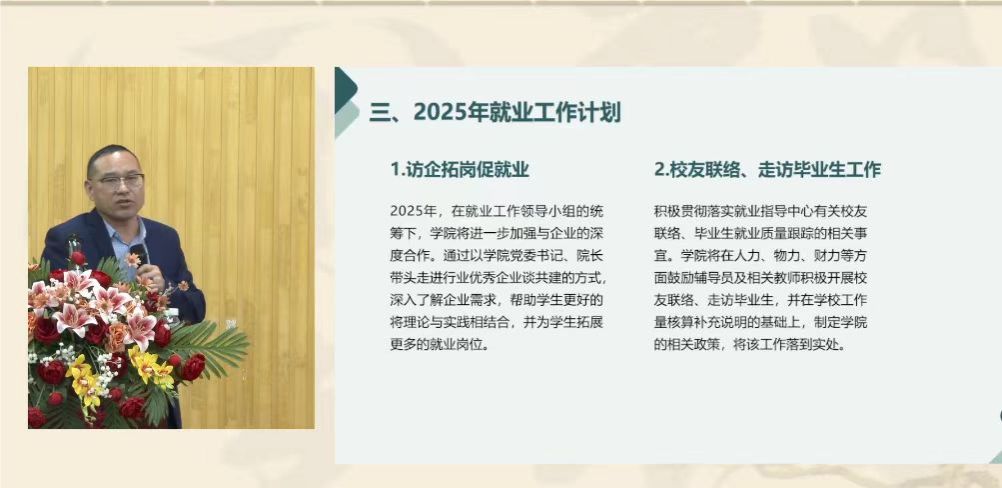 建设学院党委书记周景报、会计学院辅导员钟晓玲分别就2024年就业工作做交流发言。