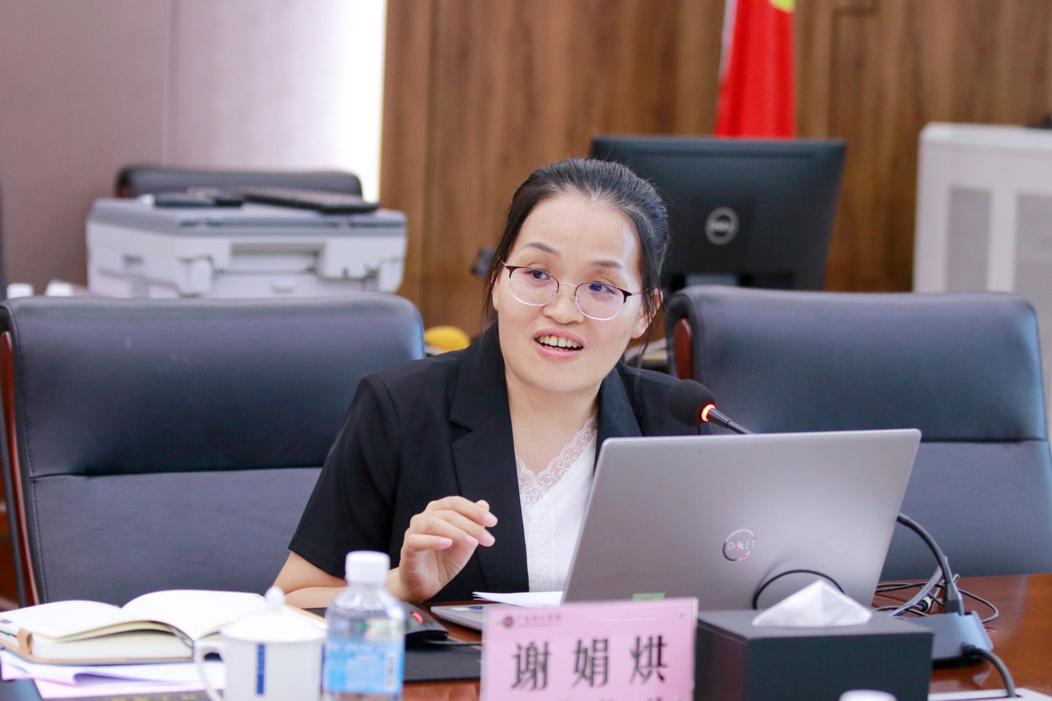 教学质量监测与评估中心主任谢娟烘介绍迎评工作情况