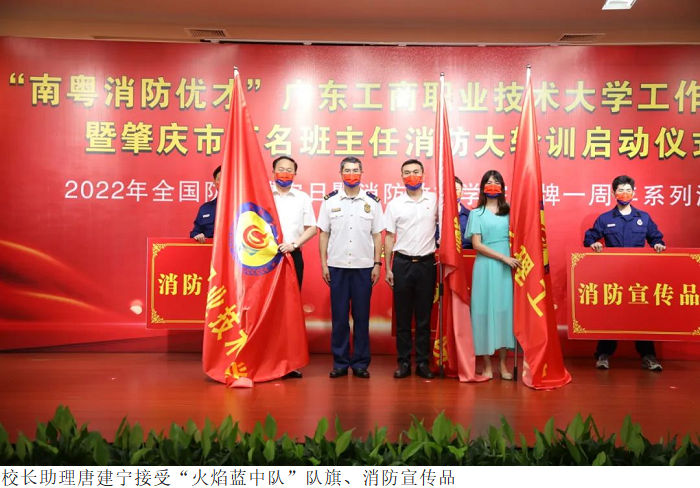 本网讯(保卫处 王斌)5月20日下午,广东省消防总队联合教育部门,在广东工商职业技术大学共同举行“南粤消防优才”工作室揭牌暨肇庆市万名班主任消防大轮训启动仪式。鸭脖官网校长助理唐建宁受邀参会。保卫处消防科陈金炼科长、2名消防专员以及7名辅导员参加此次活动。