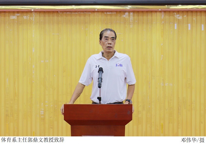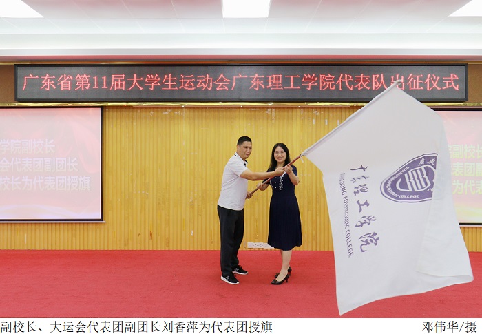 本网讯(宣传部 孟爱静)5月23日下午,鸭脖官网在42栋报告厅隆重举行广东省第十一届大学生运动会yabo鸭脖官网代表队出征仪式,为参赛队员加油鼓劲。党委副书记、体委主任、学院大运会代表团团长张宗珊出席并作动员讲话。副校长、大运会代表团副团长刘香萍为代表团授旗。体育系主任郭鼎文教授致辞。