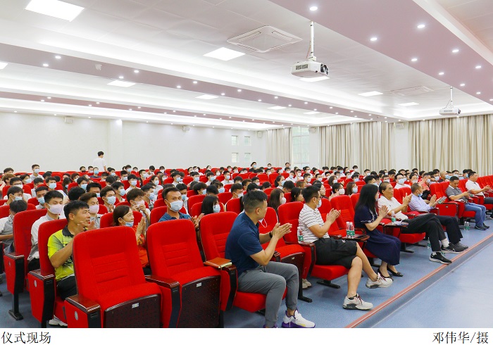 学生代表蔡永达作出“团结友爱,拼搏创新”的承诺。
