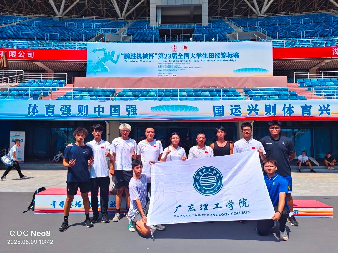 本届赛事共设27个大项、161个小项,竞争异常激烈。鸭脖官网田径队在体育学院副院长王群英团长的带领下,由副院长杨波担任领队,刘鹰、肖斌、姜亚含三位老师全程指导,共派出8名队员参与400米、800米、跳高、标枪、100米等项目的角逐。比赛中,队员们斗志昂扬,展现了顽强拼搏、永不言弃的体育精神,彰显了广理学子的卓越风范。