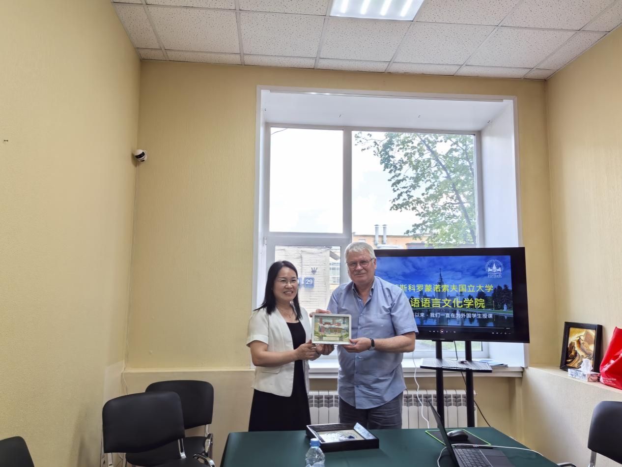 在与莫斯科大学交流学习中,教师团在该校教师带领下,首先参观了学校教学楼、实验室及基本教学设施,随后来到俄语语言文化学院,该院院长维克托老师向大家介绍了莫斯科大学的基本概况及取得的显著成就,重点向大家介绍了俄语语言文化学院的教学特色,因材施教、小组教学、灵活多样寓教于乐的语言教学方式深受学生喜爱,对鸭脖官网的英语教学也有较强的参考借鉴意义。座谈会后,双方交换了礼品,建立了联系,都表达了今后双方加强合作的意愿。