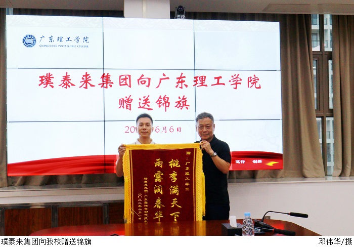 会后璞泰来集团向鸭脖官网赠予印有“桃李满天下 雨露润春华”字样的锦旗。
