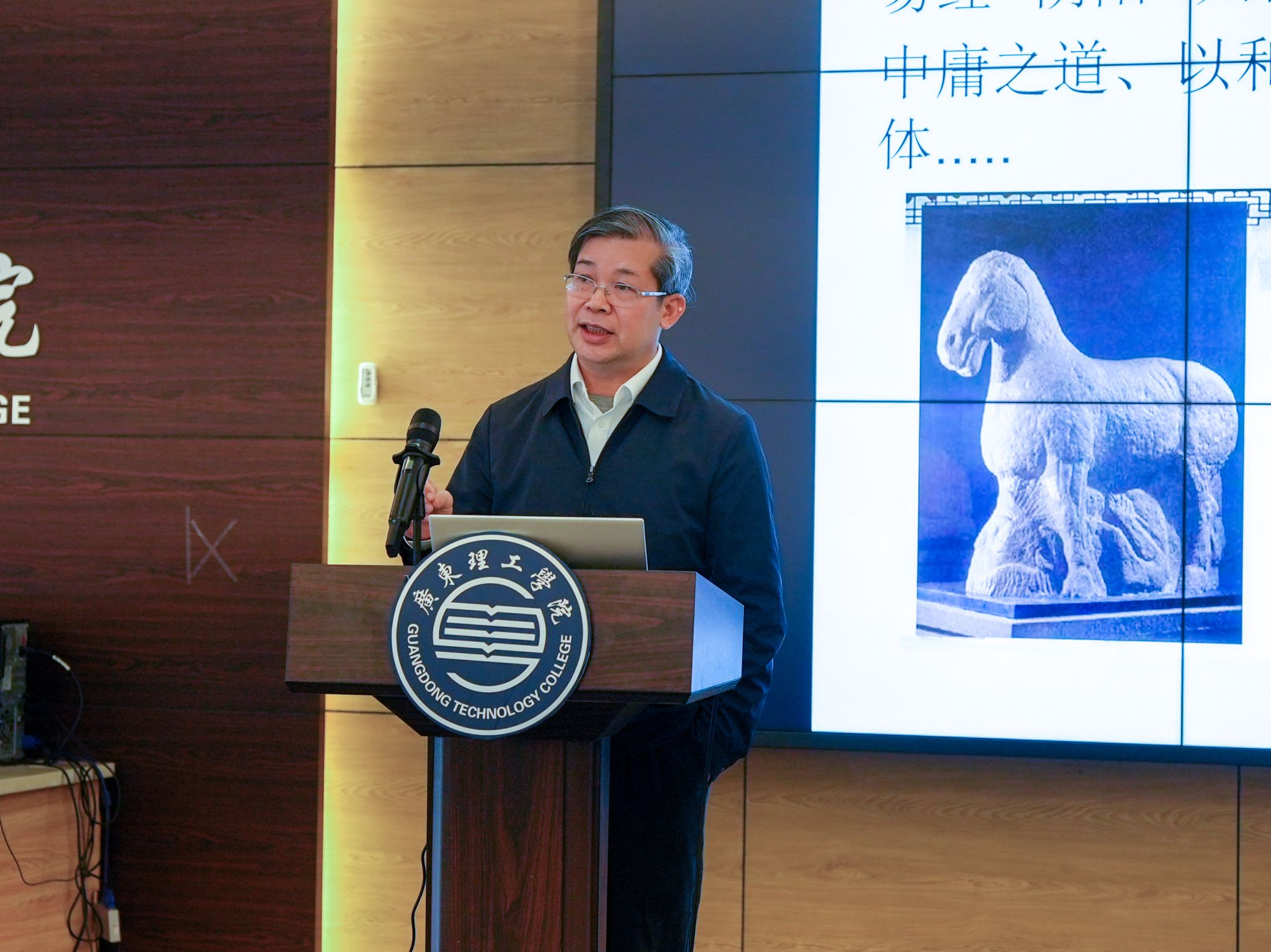 本网讯(新闻中心)11月5日下午,肇庆市端砚协会会长、肇庆学院美术学院原院长梁善教授在鼎湖校区行政楼三楼学术报告厅作了一场以端砚艺术为主题的专题讲座。讲座围绕“文化自信与端砚艺术”展开深入分享。梁善教授系统阐释了端砚所承载的文化内涵与艺术价值,为推动中华优秀传统文化的传承与发展,积极响应“文化自信”与“乡村振兴”的时代号召贡献力量。讲座由党委副书记黎会友主持。