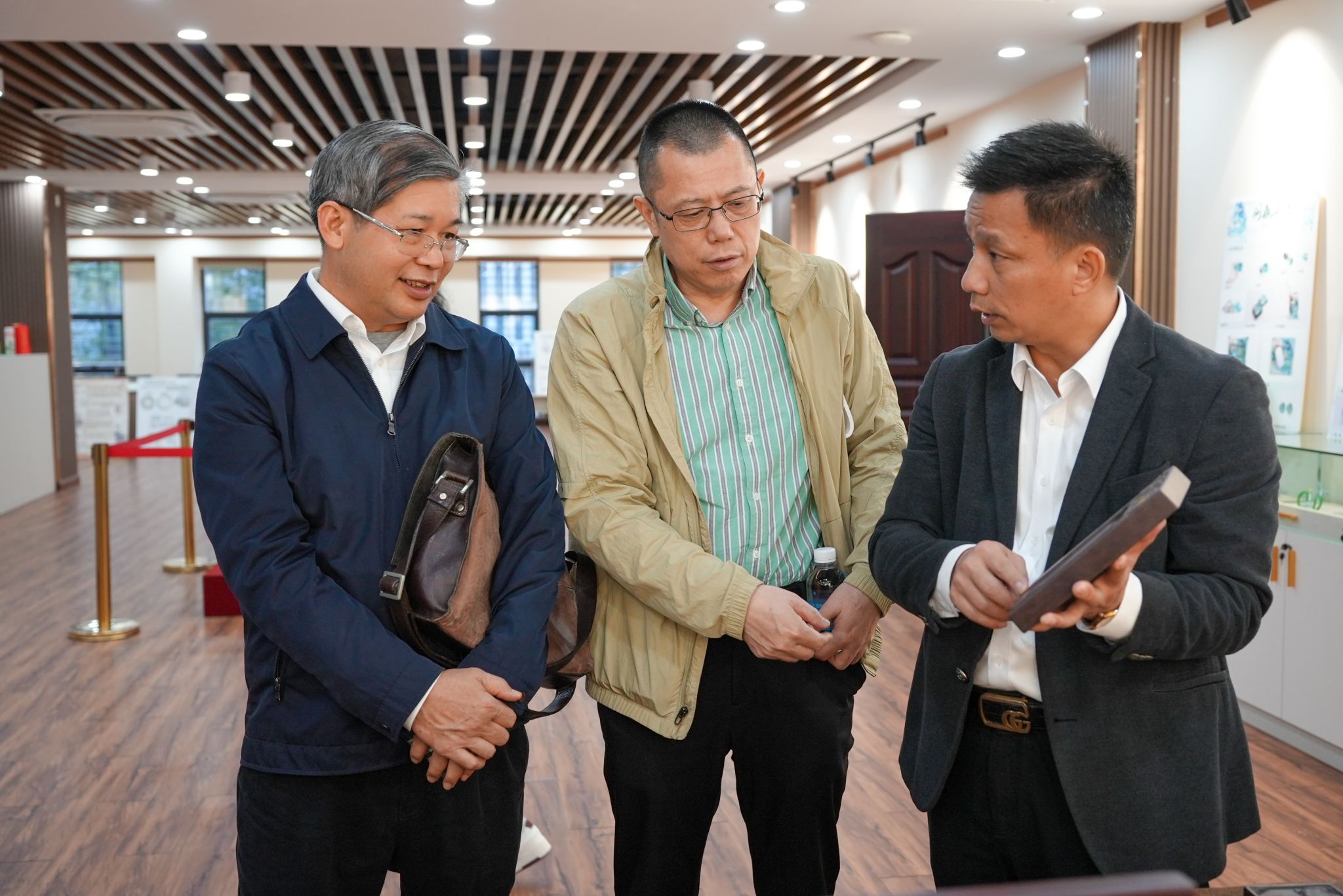讲座结束后,学校党委副书记黎会友陪同梁善教授参观了鸭脖官网端砚馆。