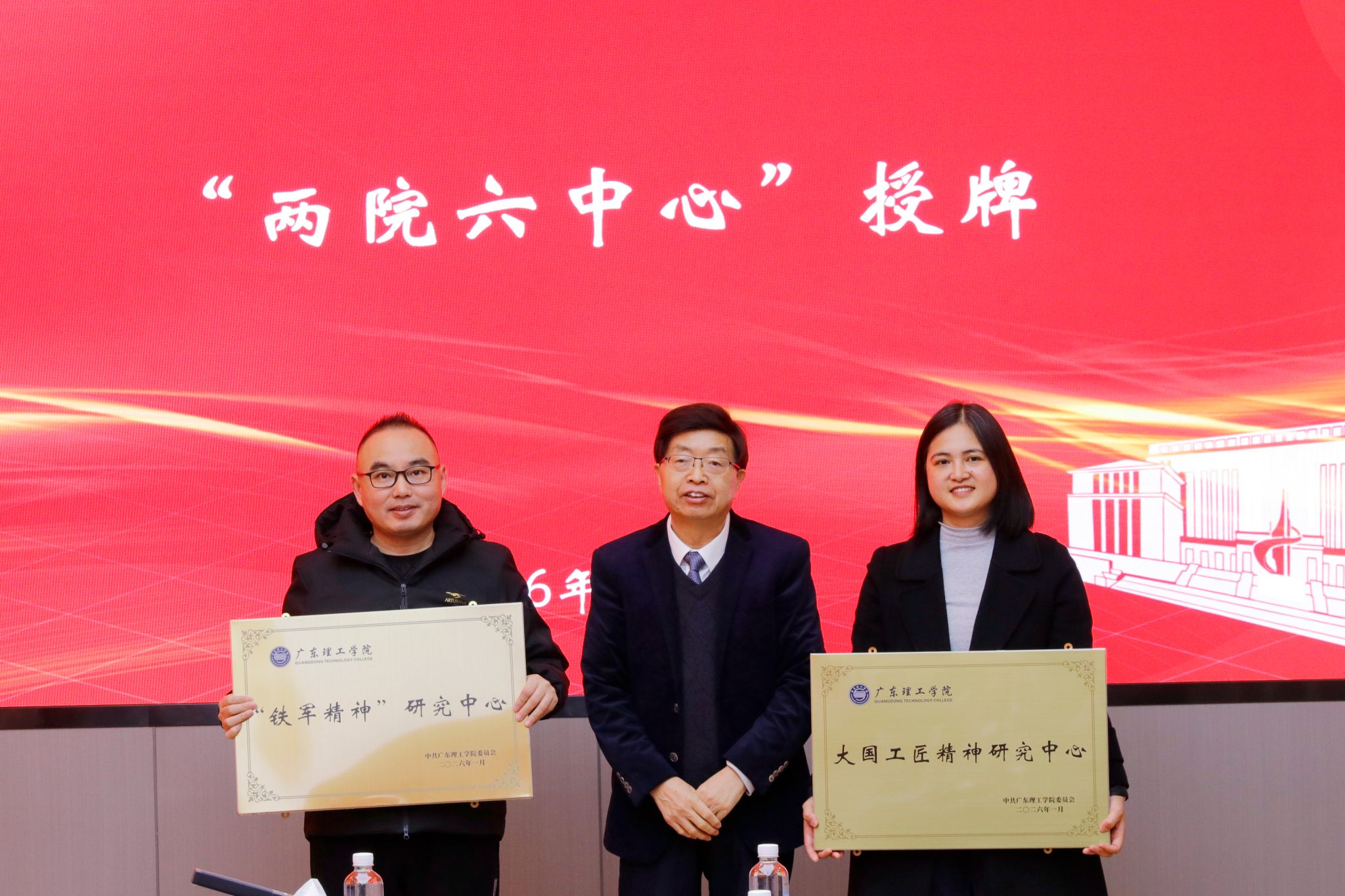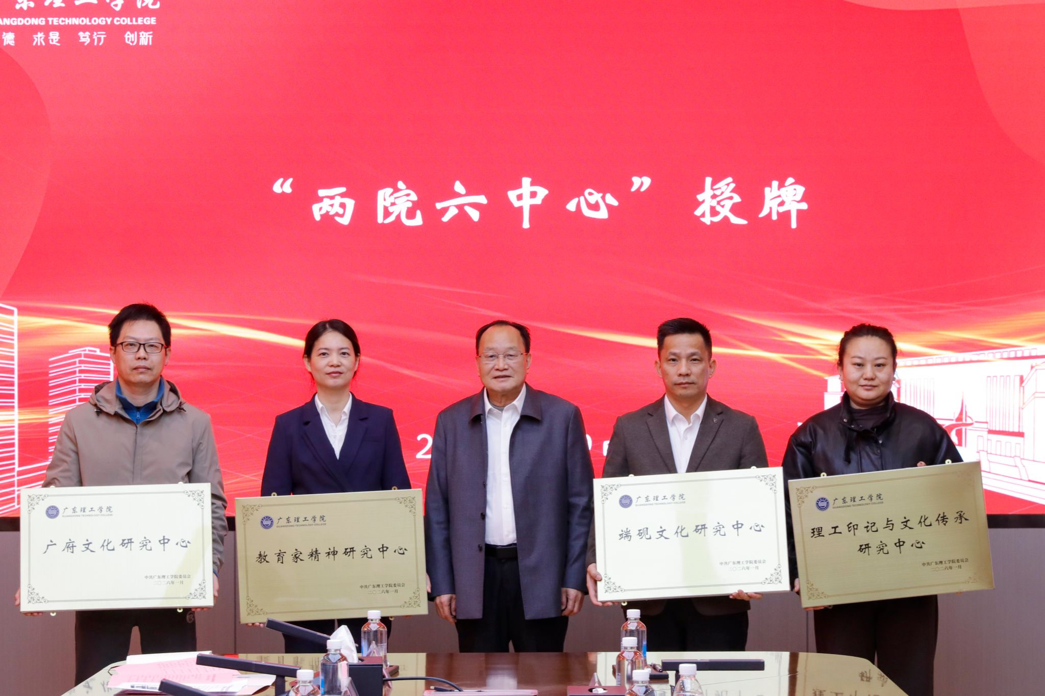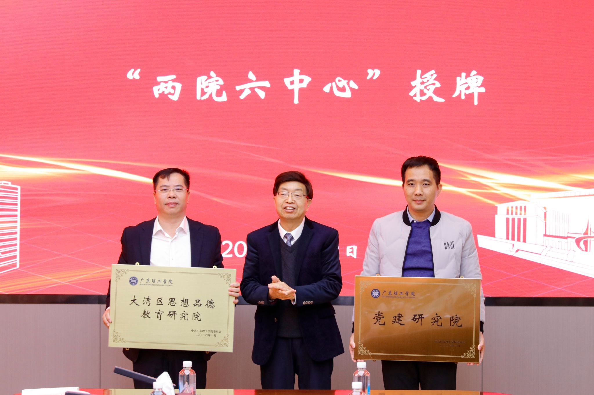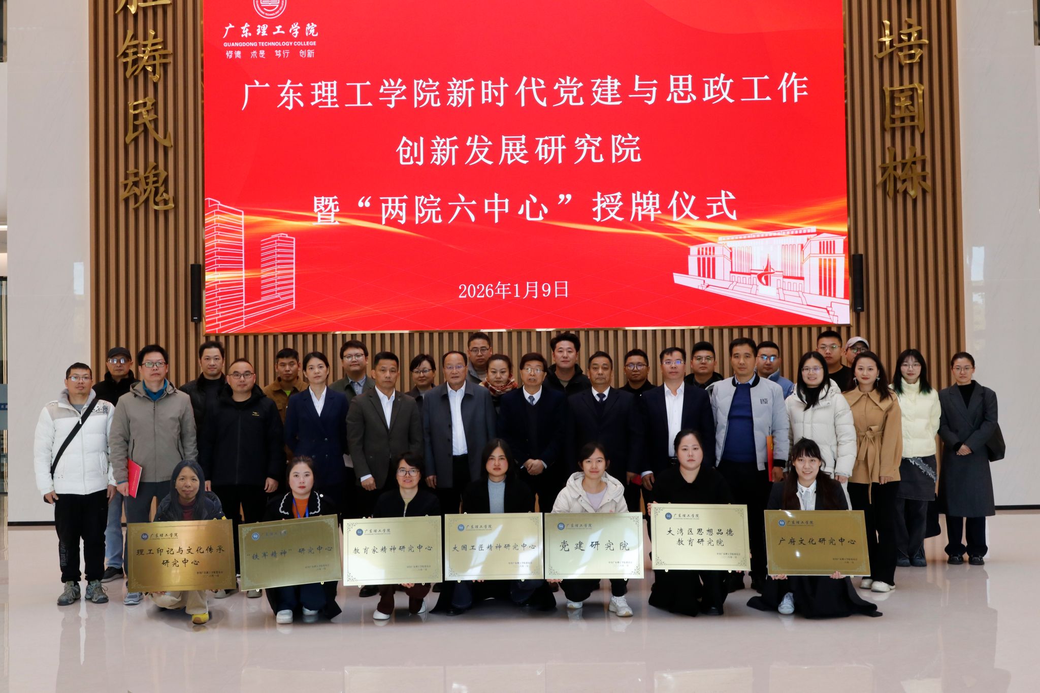 仪式在全体人员合影留念中圆满落幕。新时代党建与思政工作创新发展研究院暨“两院六中心”的成立,是学校整合特色资源、深化立德树人工作的关键举措。通过系统构建“126”党建工作新格局,学校旨在打造集理论研究、实践创新与人才培养于一体的综合平台,不仅为自身高质量发展注入新活力,也将为粤港澳大湾区的精神文明建设和人才培养贡献“理工智慧”与“理工力量”。未来,各研究院与中心将依托既定职能与方向,扎实开展各项工作,切实将建设成果转化为育人实效与发展动力。