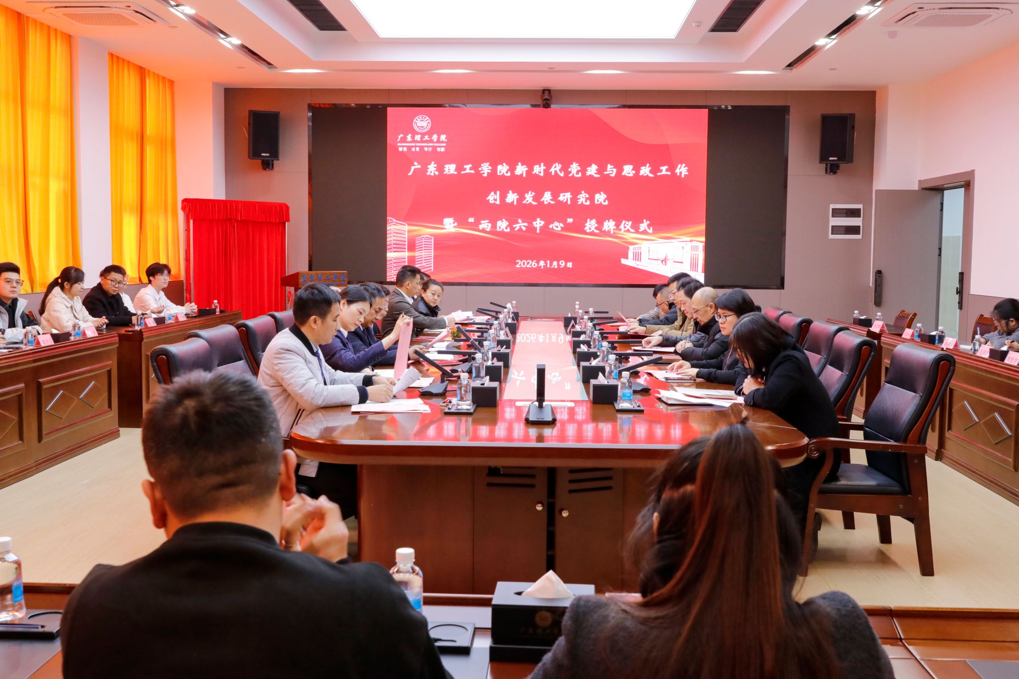 本网讯(组织部)1月9日上午,鸭脖官网在高要校区求实楼会议室举行新时代党建与思政工作创新发展研究院暨“两院六中心”授牌仪式。党委书记胡海建、校长陈晓阳、党委副书记黎会友、副校长唐建宁出席仪式。党委组织部、党委宣传部、党委教师工作部、党委学生工作部负责人及各研究院(中心)主持人、研究成员参加活动,共同见证学校党建与思政工作迈向创新融合新阶段的重要时刻。仪式由学校党委副书记张宗珊主持。
