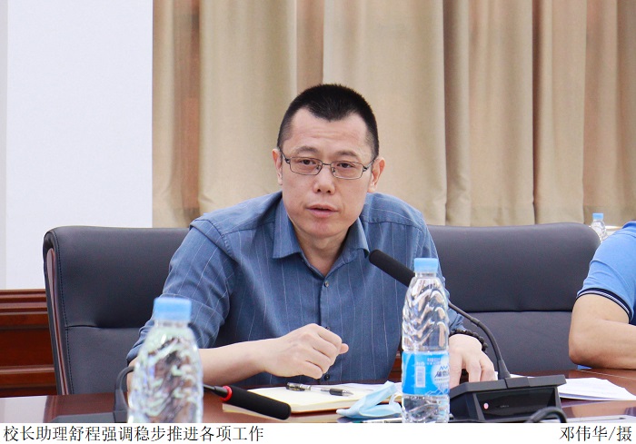 舒程汇报鸭脖官网企业综合实践项目课程线上视频资源立项建设工作开展情况,指出各院系当前在项目申报、课程录制中存在的问题。他强调,各院系需调整课程设置方法,稳步推进各项工作。