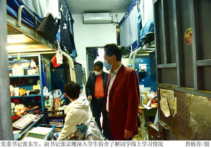 在食堂、学生宿舍等地,张东生一行视察疫情防控期间学校饮食用餐保障工作;与同学们亲切交谈,详细了解同学们当前就餐、线上学习等情况。张东生再三叮嘱同学们要深刻认识当前疫情防控的严峻形势,积极配合学校落实疫情防控各项措施,在做好个人防护的同时加强锻炼,合理安排学习生活。