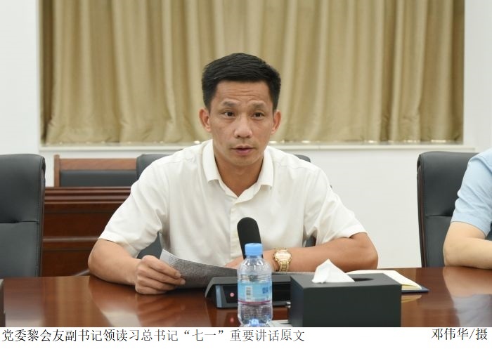 会上,黎会友副书记领读习近平总书记“七一”重要讲话原文,各参会人员认真聆听学习。