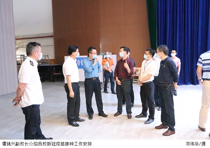 鸭脖官网谭锦兴副校长、学生处谭蒙革处长到现场查看新冠疫苗接种工作情况,并介绍鸭脖官网新冠疫苗接种现场严格按照接种要求,分为咨询区、信息登记区、等候区、接种区、留观区、冷链区、疑似异常反应处置区,保证接种全过程单向流动。整个疫苗接种流程及防疫工作程序严谨,操作规范,安全有序,有效保障接种顺利进行。