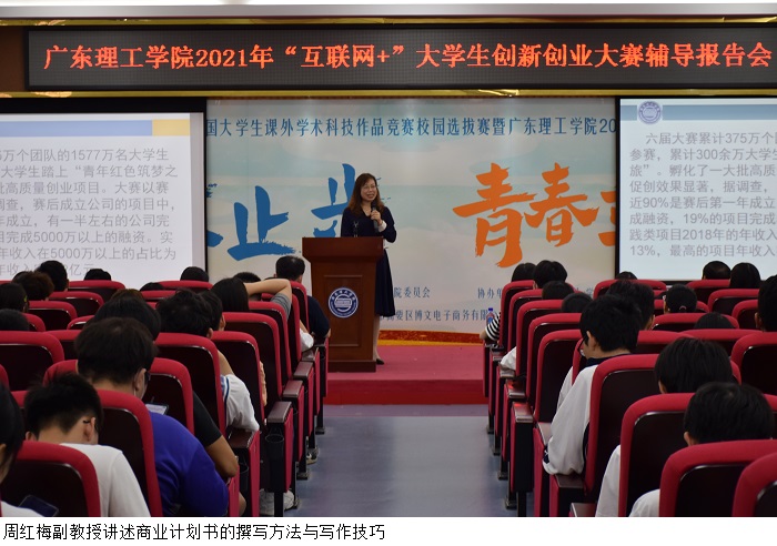 周红梅副教授从“互联网+”大学生创新创业大赛项目的要求,分析了商业计划书的结构、格式和特点,包括项目摘要、团队组成、项目背景、市场分析、项目定位、融资策略、商业模式、营销策略、财务预算、风险分析等,并结合学校优秀“互联网+”大学生创新创业大赛项目实例,通过视频,讲述了商业计划书的撰写方法与写作技巧。