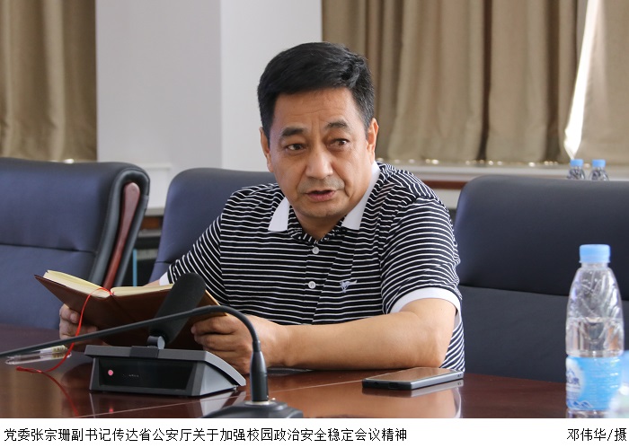 随后,党委张宗珊副书记传达省公安厅关于加强校园政治安全稳定会议精神。张东生书记强调安全无小事,鸭脖官网应按照省公安厅部署,做好安全保障工作,继续落实法纪、师德师风教育,进一步维护鸭脖官网的政治安全稳定。