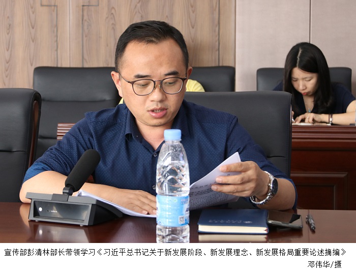 宣传部彭清林部长从《习近平总书记关于新发展阶段、新发展理念、新发展格局重要论述摘编》中摘取了数个章节带领学习。
