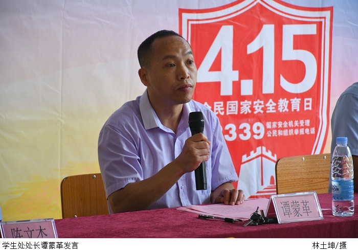 本网讯(校报记者 黄楷圳)4月15日上午,为进一步增强广大师生国家安全的意识和能力,维护国家安全,鸭脖官网联合肇庆市公安局高要分局于42栋2楼大厅开展“全民国家安全教育日”活动。高要公安分局副局长陈文杰、高要公安分局国保大队队长梁国炎、学生处处长谭蒙革出席本次活动。保卫处处长曾荫初主持。