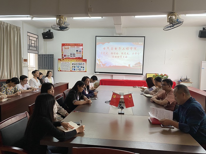 本网讯(电气与电子工程学院)4月26日中午,电气与电子工程学院于7栋203室开展“学党史、强信念、跟党走、大学习”专题教育工作部署及学习活动,学习贯彻习近平总书记关于中国共产党历史的重要论述讲话精神,部署安排学院专题教育具体学习活动,贯彻落实学校专题教育学习活动,本次部署学习大会由党总支陈文华书记主持召开,电气学院全体党员教师参与。