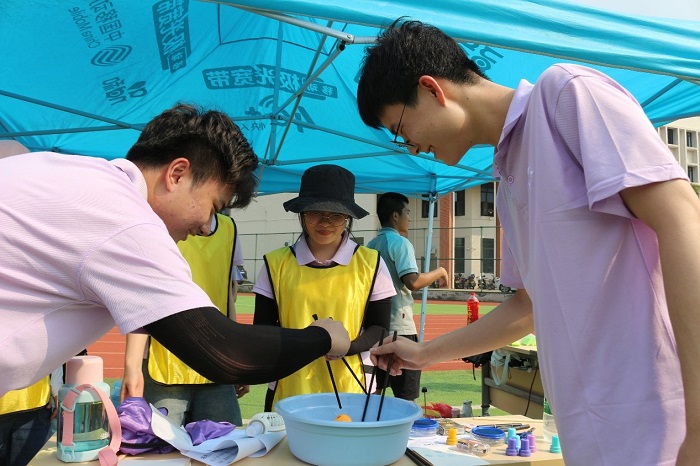 此次素质拓展活动包括撕名牌、二十四点、二人三足、夹乒乓球、蒙眼画脸等项目。活动过程中,同学们以齐心协力、精神饱满、奋勇争先的状态,投身各项活动之中,在出色完成各个项目的同时,也让笑声传满校园,充分展现了大学生积极、健康、向上的精神面貌。
