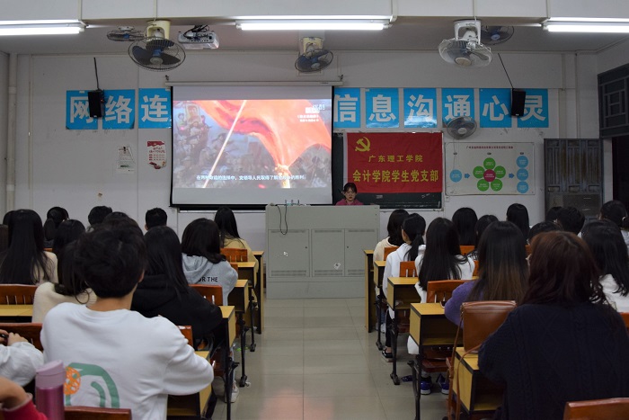 本网讯(会计学院)为加强学生党员党性教育,提升党员发展质量。在会计学院党总支的统一部署下,3月22日晚上,会计学院在高要校区7栋211教室举行第二期党史学习会,参加本次活动的有会计学院19级第一批建党对象,本次学习会由会计学院19级学生党支部先锋队干部徐明梅主持。
