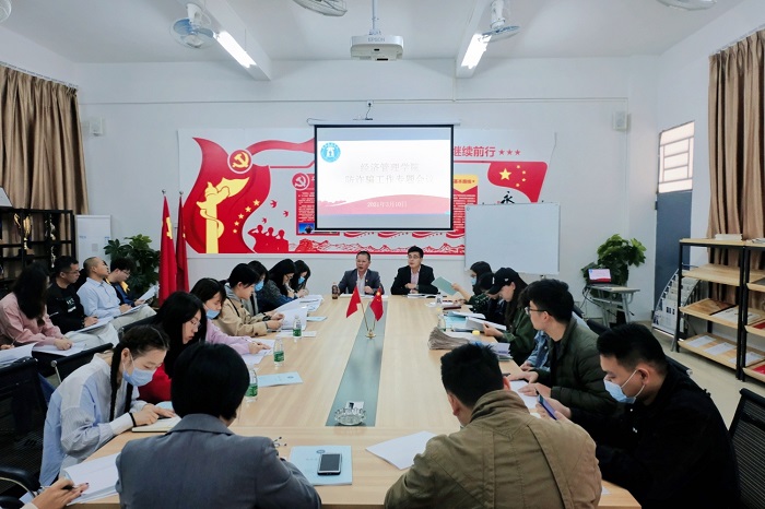 本网讯(经济管理学院)为切实加强我院学生防诈骗安全意识,进一步做好防范电信诈骗工作,我院于3月10日上午组织全体辅导员召开防诈骗工作专题会议。党总支甘怀南书记、吴楚升副书记出席会议,经管全院辅导员参加会议。