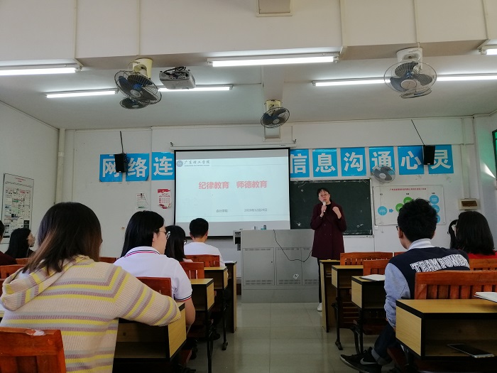 通过河北秦皇岛一位疲惫教师进班前猛作表情管理这一事例,盛洁院长简述真正的大学教师应该具备感动他人的能力,对自身工作充满热爱,才能全身心投入教育工作。其次,盛院长明确指出教师们要通过品德去影响学生,守住法律底线,规则底线,做照亮学生的光。教师们除了以身作则,言传身教,还应学会去爱与尊重,学会宽容、平等地对待学生,学会与学生交流、合作。
