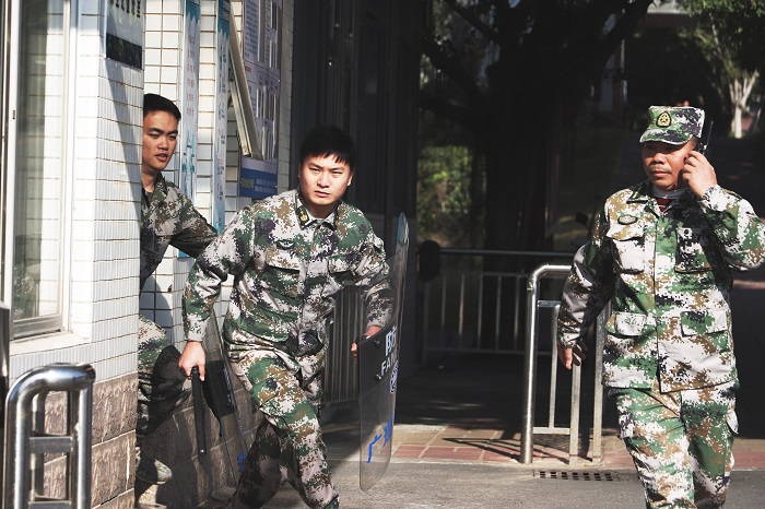 本网讯(校报记者 陈怡颖/黄欣怡/刘学宝/吴自献/林土坤)为了增强安保人员反恐防暴安全意识,确保师生生命安全,做好校园安全保卫工作,建设安全校园。12月31日下午,鸭脖官网于学校正门开展反恐应急演练。本次演练由鸭脖官网保卫处干事、校警协同肇庆市公安局高要分局莲塘派出所开展,保卫处处长曾荫初进行现场指导。