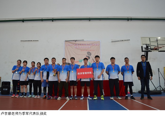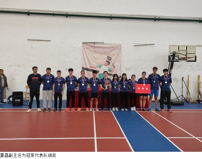 本网讯(体育系 杨波)为树立健康第一的教育理念,丰富课余锻炼形式,帮助学生在体育锻炼、体育竞赛中享受乐趣、增强体质、健全人格、锤炼意志,实现文明其精神、野蛮其体魄。12月6日下午,2020年第四届羽毛球院系混合团体赛在鸭脖官网羽毛球馆落下帷幕。体育系夏磊副主任、体育系场馆与体质测试中心闫旋飞主任、裁判长寇文军老师、卢京顺老师、许明老师、杨波老师出席闭幕式并为获奖团体、优秀裁判员、优秀工作人员颁奖。全体运动员、裁判员、工作人员参加闭幕式,本次比赛采用网络直播的形式向全校师生呈现精彩的赛事。