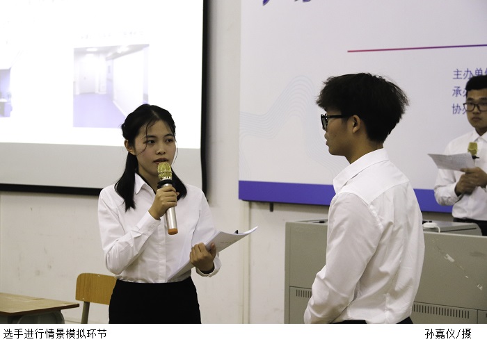 经过各院系初赛和学校书面作品复赛,此次决赛共有16位选手入围。决赛分为PPT展示和情景模拟两部分,参赛选手依次上台进行演讲答辩。