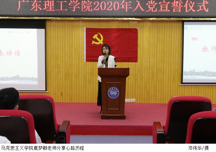 新发展教师党员代表,马克思主义学院鹿梦卿老师发言,她表示人生在世,总要有一种信仰支撑我们的内心大厦,党的思想便是我的指路明灯。组织上入党是一生一次的,思想上入党却是一生一世的,我们要用实际行动来履行誓言,为党旗争辉,争取早日成为一名名副其实的、正真的、光荣的共产党员。