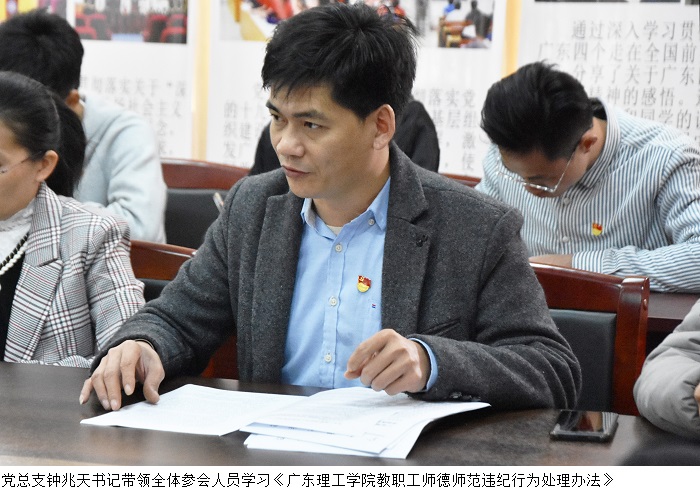 会议上,汽车工程系党总支钟兆天书记带领全体参会人员学习《yabo鸭脖官网教职工师德师范违纪行为处理办法》。他强调,我系教师要认真学习文件内容,不断提高自身师德素养,注重强化育人意识。钟书记表示,只有我系全体教师共同努力,才能抓好我系师德师风建设。
