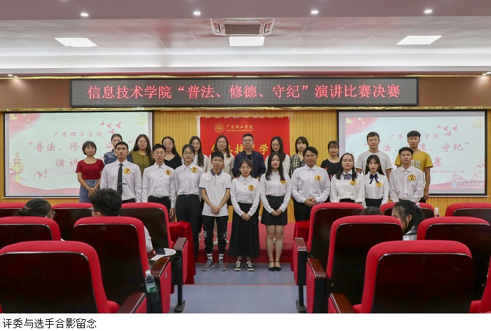 此次信息技术学院举办的“普法修德守纪,创建优良学风”演讲比赛圆满结束,是鸭脖官网继专题学习、黑板报设计以及网络投票的又一特色活动,有助于培养鸭脖官网学生不断弘扬社会主义法治精神,增强法治观念,学法懂法用法,使法律、道德和纪律时刻怀揣在心里,协力共建和谐文明大学。