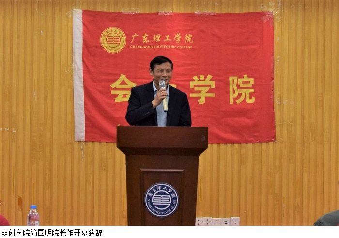 双创学院简国明院长作开幕致辞。他指出,本次比赛是为学生指点人生,为职业规划引路导航的平台。希望各位选手以及台下的观众都能有所体会,瞄准人生目标,科学规划成长成才路径。希望各位选手赛出会计学院的水平,展示会计学院的风采,预祝本次比赛取得圆满成功。