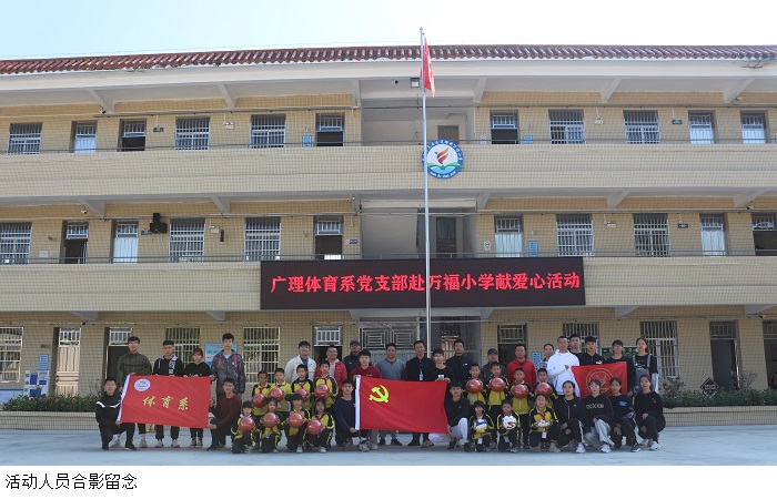 本网讯(体育系 杨波)12月4日,体育系党支部前往高要区莲塘镇万福小学,开展爱心助学捐赠活动,用实际行动践行为人民服务的初心使命。体育系党支部刘海粟书记、体育系夏磊副主任率体育党员老师、体育系支教队全体成员参加本次活动。体育系党支部全体党员教师一直心系爱心助学工作,希望通过自己的绵薄之力助力万福小学教学环境与条件的改善,结合万福小学实际教学情况,为其捐赠了篮球、足球、排球、学习文具等5000余元的物资。