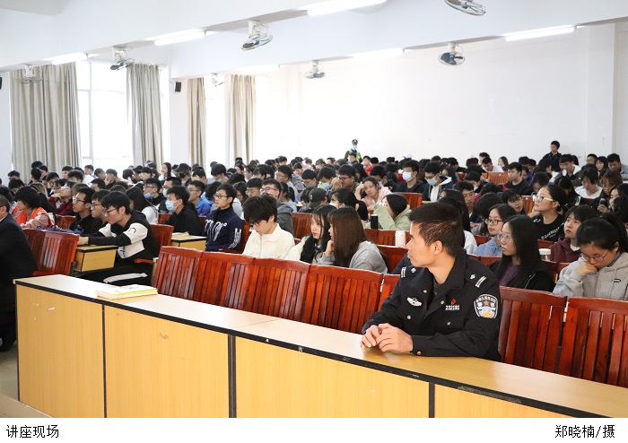 孙恺警官阐述了电信网络诈骗的定义、种类、形式和防范措施,以实际案例分析了网络电信诈骗的严重危害性,并着重介绍了冒充公检法人员、网络刷单、网络贷款诈骗、网购游戏币诈骗、冒充熟人诈骗等几种常见的诈骗手法。他强调,近年来电信诈骗的形式越发多样化,高校更是电信诈骗的高发地区,希望同学们提高防范意识,牢记“六个一律,八个凡是。”同时,在遭遇网络电信诈骗时不要慌张,及时报警止损。