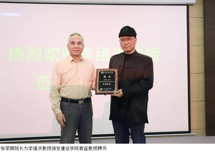 讲座伊始,黎副书记为李教授来到建设学院开设讲座表示由衷的谢意。随后,张院长为李教授颁发建设学院客座教授聘书。