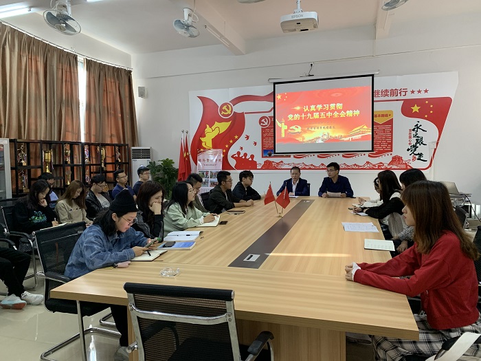 本网讯(经济管理学院)为全面贯彻学习党的十九届五中全会精神和习近平总书记在全会上的重要讲话精神,自觉用全会精神武装头脑、指导实践、推动工作,11月25日上午,党总支甘怀南书记、吴楚升副书记、学生党支部赵雪娇书记与各党员教师前往4103会议室,集中学习全会精神,传达全会内容。