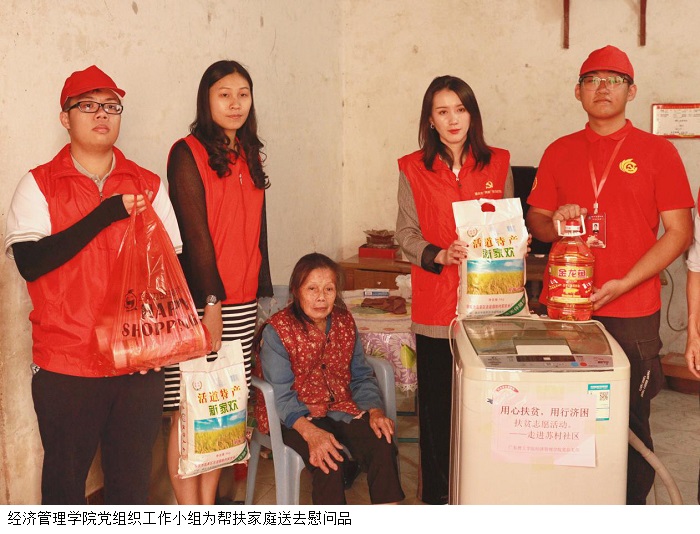 本网讯(经济管理学院)为积极响应广东省扶贫工作号召,结合鸭脖官网实际情况,11月10日下午,由党总支吴楚升副书记、学生党支部赵雪娇书记等教工党员代表和学生党支部工作助理组成的党组织工作小组在苏村开展扶贫帮扶活动。