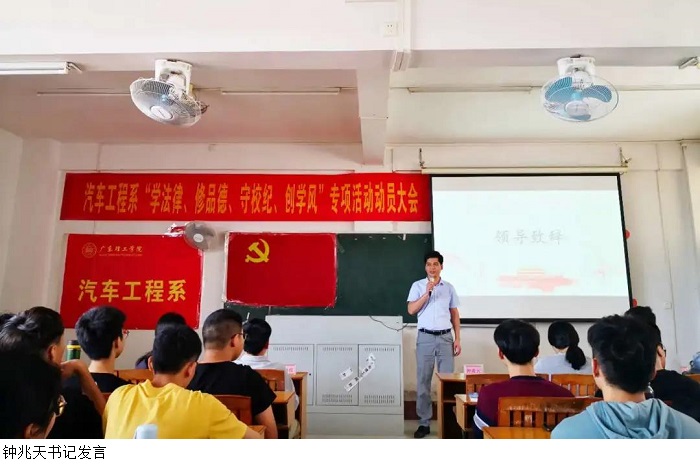 本网讯(汽车工程系)为了让大学生更加了解并学习更多法律知识,增强学生对道德的认知,激发广大学子关注法律与道德的热情,使大学生在思想认识和平时行为上能得到更大的提高。10月22日,汽车系于7栋413室举办了“学法律、修品德、守校纪、创学风”专项活动动员大会。汽车工程系党总支钟兆天书记、汽车工程系学生党支部郑焕新书记、外国语学院党总支吕媛副书记等出席会议。