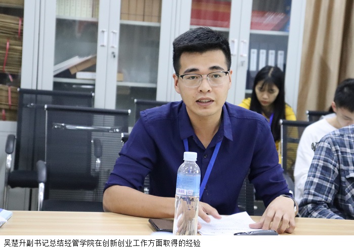 吴楚升副书记就过去几年我院在创新创业工作所取得的经验做出总结。吴副书记提出,我院应注重院内的选拔和指导工作,完善奖励机制,做好大赛准备工作。谷曼老师做出新学年的创新创业工作部署,明确了比赛议程的要求,落实专业老师的指导工作,强调大学生职业生涯规划大赛是广东省特色比赛,指导老师们应鼓励我院学子踊跃报名,激励学生自主创新。