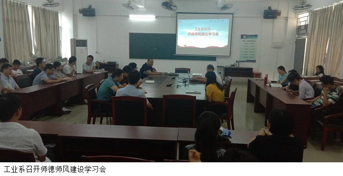 本网讯(工业系)为了进一步加强我系师德师风建设,全面提升教师思想政治素质和职业道德水平。9月25日下午,工业系在9304会议室召开师德师风建设学习会。工业系伍先明主任、杨斌副主任、党总支苏庚华副书记以及工业系全体教职工参加会议。会议由苏庚华主持。