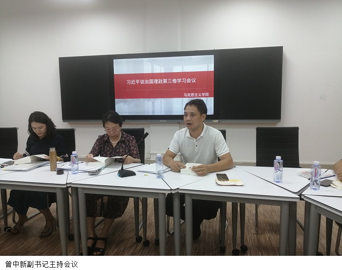 本网讯(马克思主义学院)为扎实推进《习近平谈治国理政》(第三卷)内容融入思想政治理论课教学,9月22日下午,马克思主义学院在高要校区7栋103教室开展了《习近平谈治国理政》(第三卷)专题学习会议。会议由党支部曾中新副书记主持,学院全体教师参加。