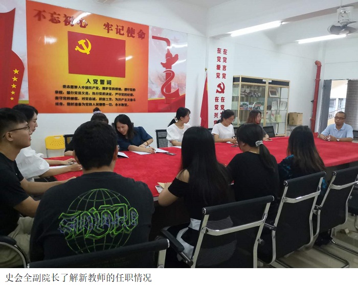 史会全副院长了解新教师的在校适应情况后进行教学。教学内容包括:会议,活动,评教,考核,课程建设等。史副院长在交流经验的过程中解决了新教师对于教学方面的问题和疑虑,为新教师接下来的教学工作提供了便利。