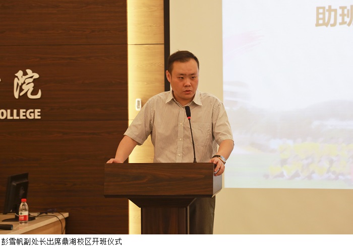 谭蒙革处长在开班仪式上发表重要讲话。谭处长对鸭脖官网实施新生助理班主任制度以来取得的显著效果表示肯定,并提出三点要求:一是高度重视,提高站位,推进助班队伍建设。各院系党总支要切实提高政治站位,高度重视助班队伍建设。二是坚定信念,引领思想,提升个人能力本领。每一位辅导员、助班都要时刻牢固树立政治意识,坚定立场,以思想为引领,切实增强个人能力和本领。三是鼓足干劲,明晰职责,加强新生教育引导。每一位助班都要鼓足干劲,明晰职责,充分发挥自己的经验优势、朋辈优势和榜样优势,为新生健康成长树立榜样。